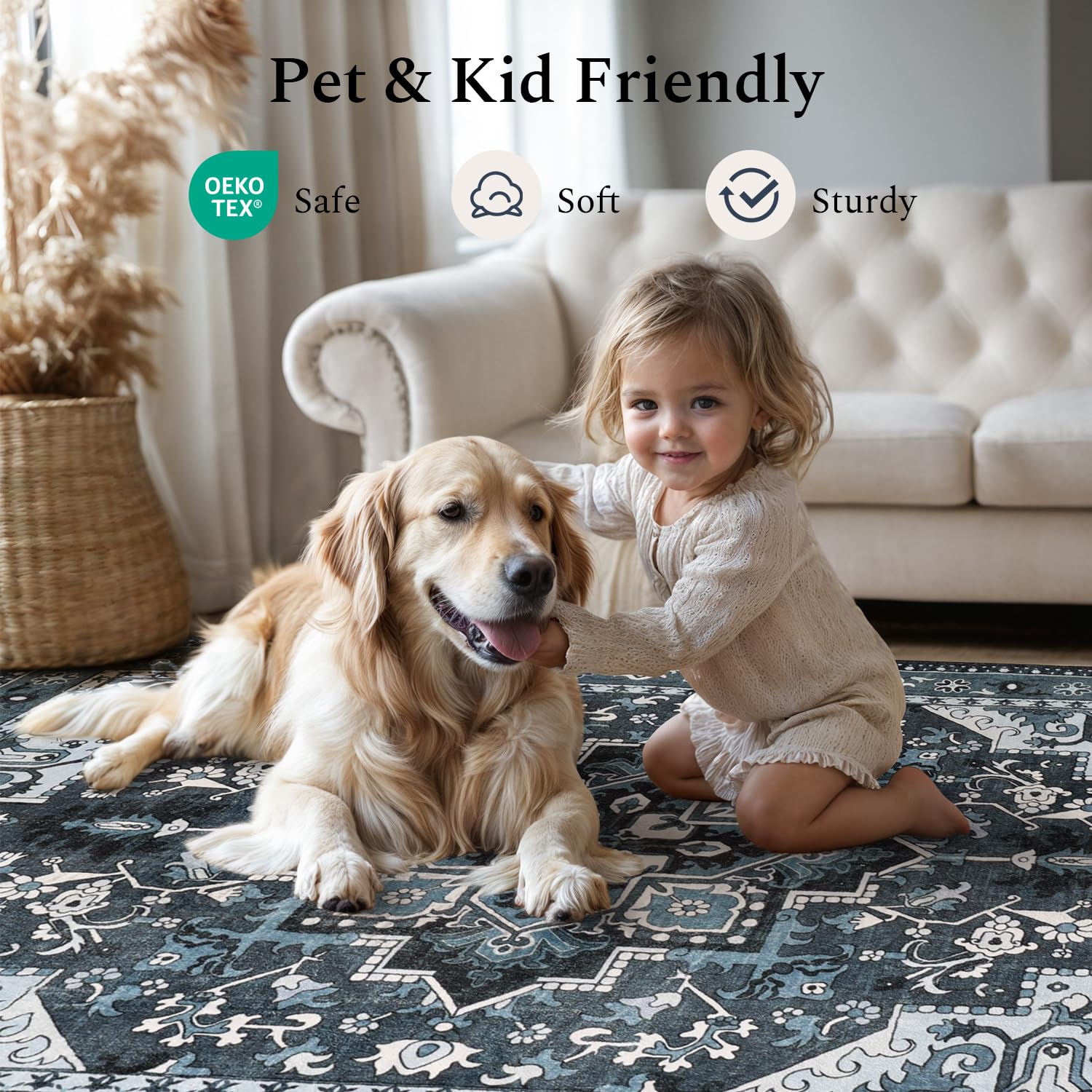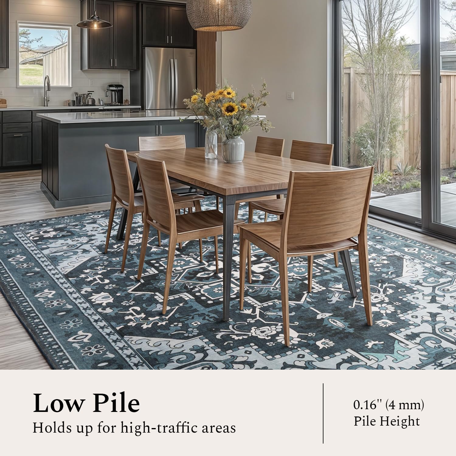 - Built to Last: Our rug is made from durable synthetic fibers, with a 0.16" (4 mm) low pile. It won't catch on doors, block furniture movement, or hinder robot vacuums. It holds up well in high-traffic areas, like living rooms, dining rooms, and home offices.